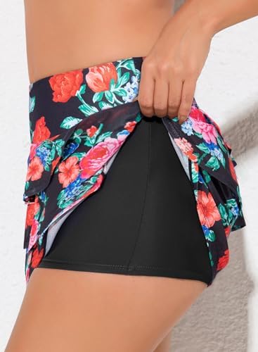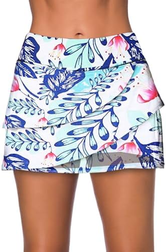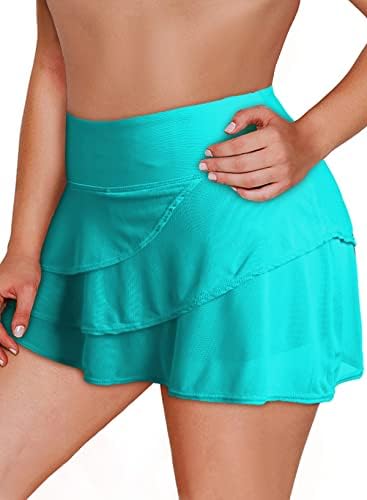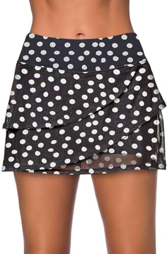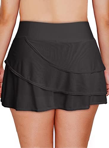 Aleumdr Women's Waistband Layered Swimdress Ruffle Swim Skirt Swimsuit Bottom(Available in Plus)