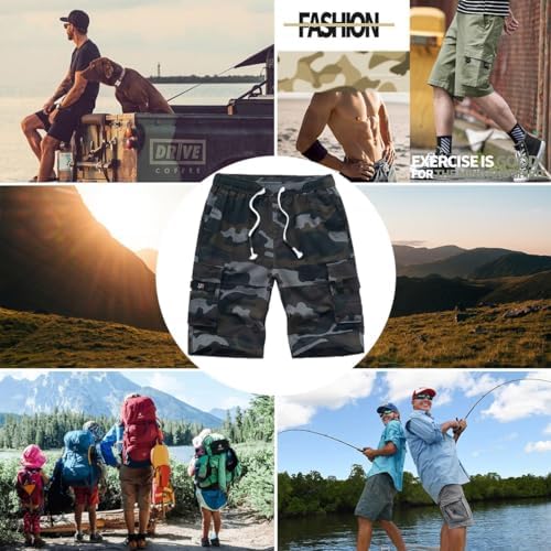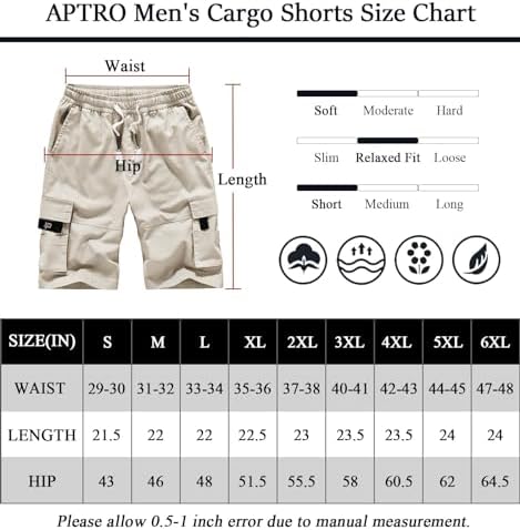 APTRO Men's Cargo Shorts Elastic Waistband Drawstring Summer Casual Cotton Shorts Big & Tall Relaxed Fit Work Shorts