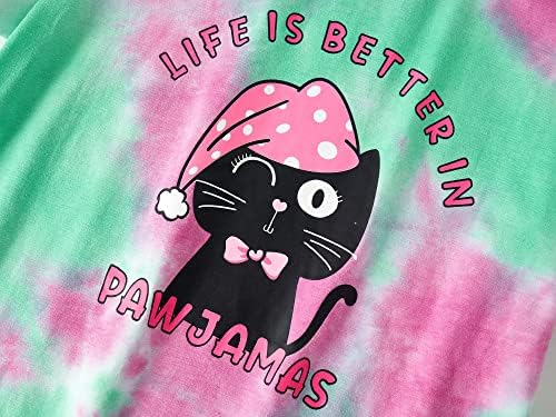 Beezizac Tie Dye Pajamas for Girls - 100% Cotton Glitter Butterfly Cat Summer Short Sleeve PJ Set Tween Clothes Size 4T - 18