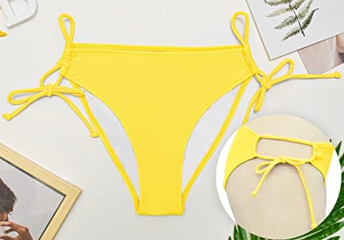 Bellecarrie Women's Tie Side Bikini Bottoms Mid Rise String Bathing Suits Bottom…
