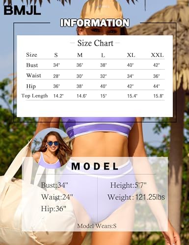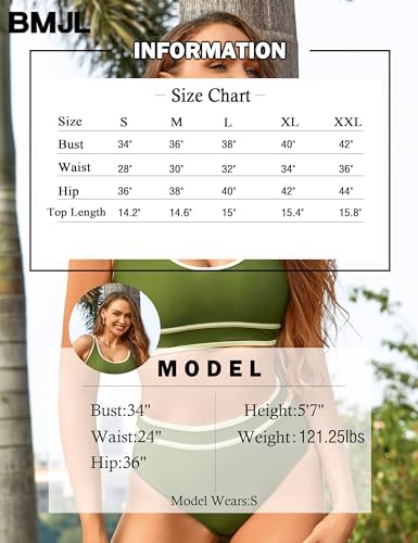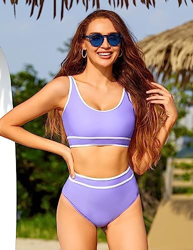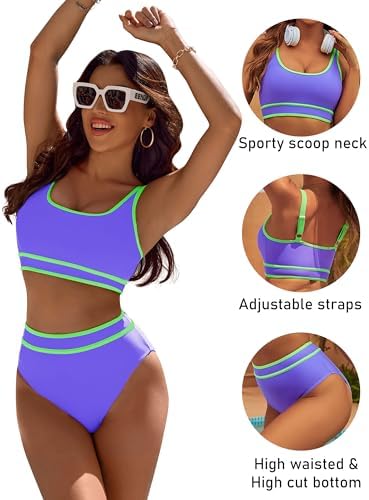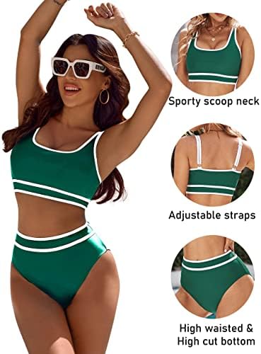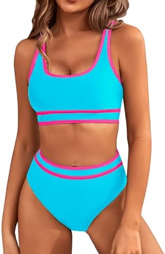 BMJL Women's High Waisted Bikini Sets Sporty Two Piece Swimsuits Color Block Cheeky High Cut Bathing Suits