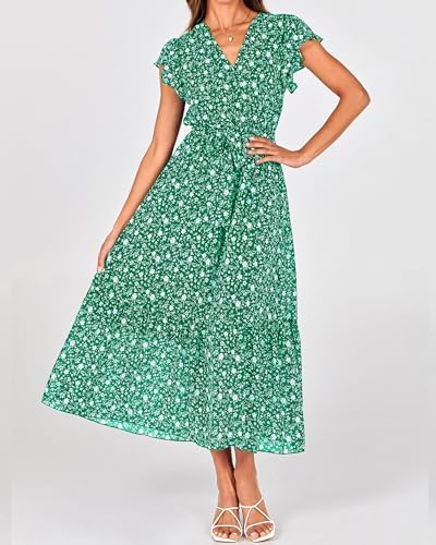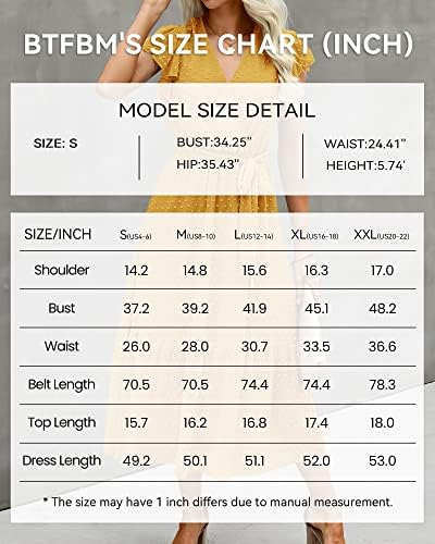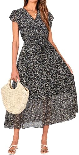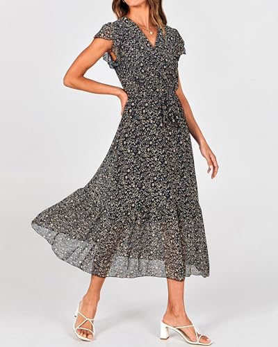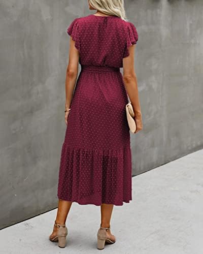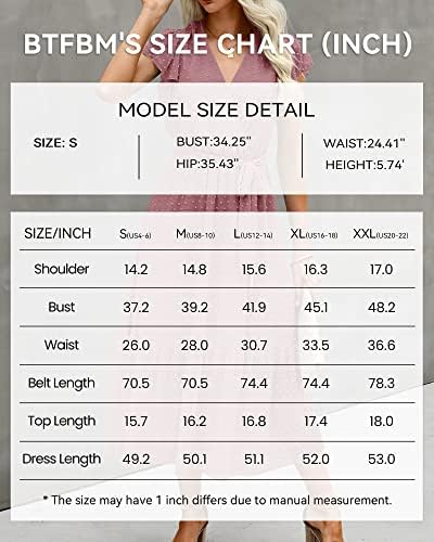 BTFBM Women's Summer Casual Wrap V Neck Beach Party Flowy Ruffle Midi Dress