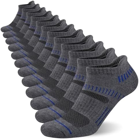 COOPLUS Mens Ankle Socks Athletic Cushioned Breathable Low Cut Tab With Arch Support - 6 Pairs