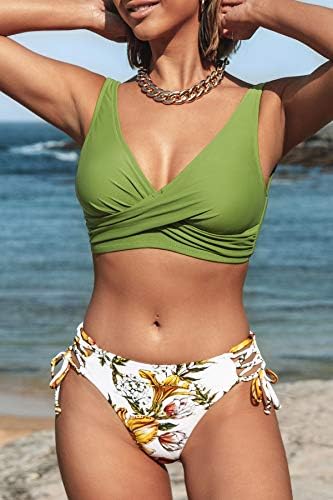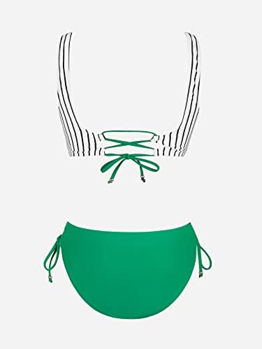 CUPSHE Women Swimsuit Bikini Set High Waisted Push Up Cheeky Drawstring Two Piece Bathing Suit