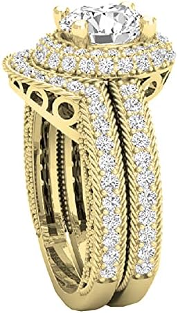 Dazzlingrock Collection Round White Cubic Zirconia CZ Halo Wedding Bridal Fashion 2 Piece Engagement Ring Set, Available in 10K/14K/18K Solid Gold