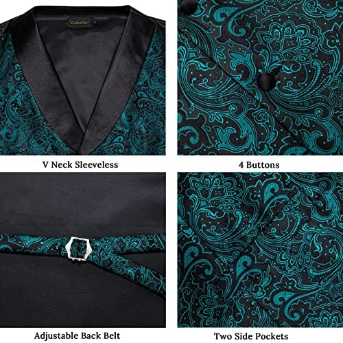 DiBanGu Mens Paisley Suit Vest Silk Jacquard Waistcoat and Necktie Set Formal Shawl Collar Dress Vest 7PCS for Wedding Party
