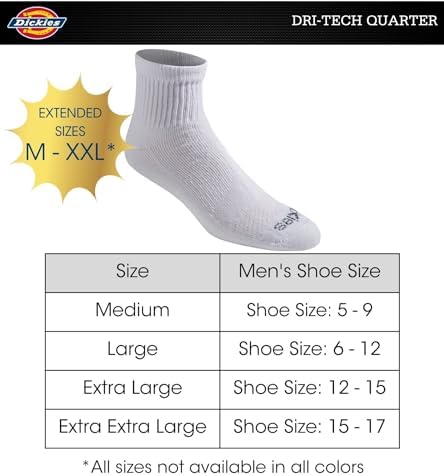 Dickies Men's Dri-tech Moisture Control Quarter Socks (6, 12, 18 Pairs)