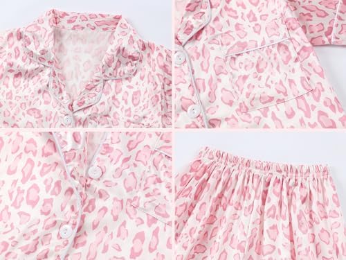 DIPUG Girls Pajamas Satin Pajama Set Silk Pjs Short Sleeve Sleepwear
