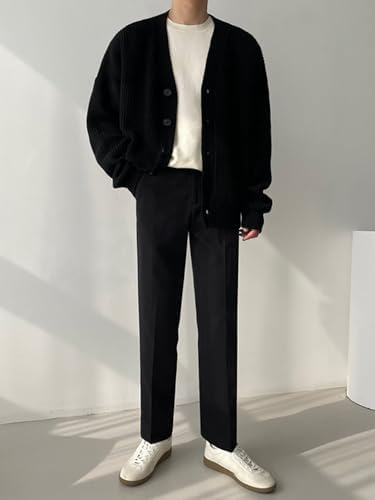 Floerns Men's Casual Long Sleeve Button Front V Neck Rib Knit Cardigan Sweater