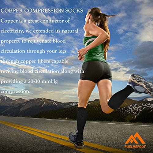 FuelMeFoot 3 Pack Copper Compression Socks - Compression Socks Women & Men Circulation - Best for Medical,Running,Athletic