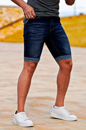GINGTTO Men's Denim Shorts Slim Fit Stretch Ripped Short Jeans