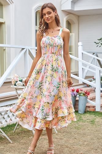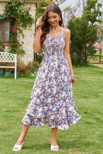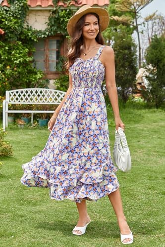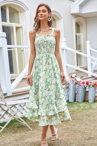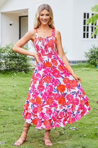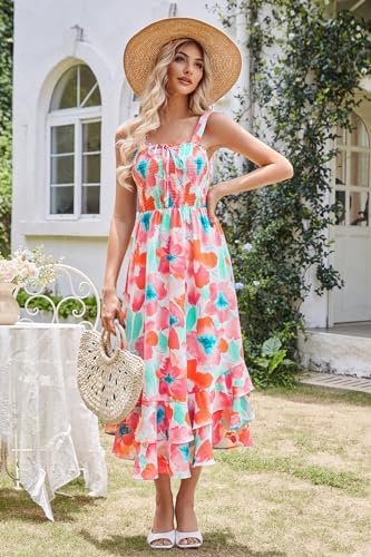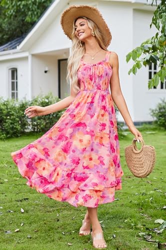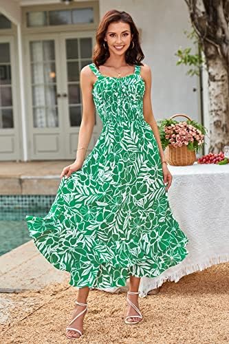 GRACE KARIN Women's 2024 Summer Floral Boho Dress Square Neck Strapped Swing A Line Beach Long Maxi Dress