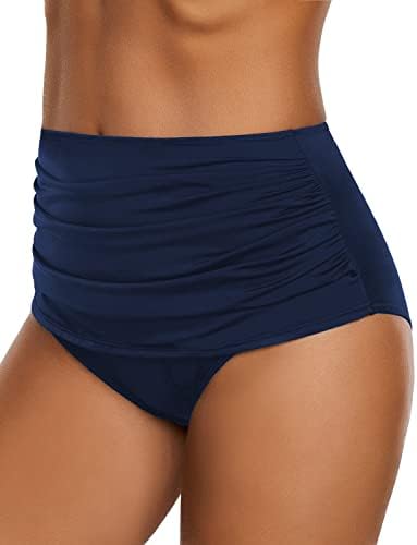 GRAPENT Women's High Waisted Swim Bottom Ruched Bikini Tankini Swimsuit Briefs