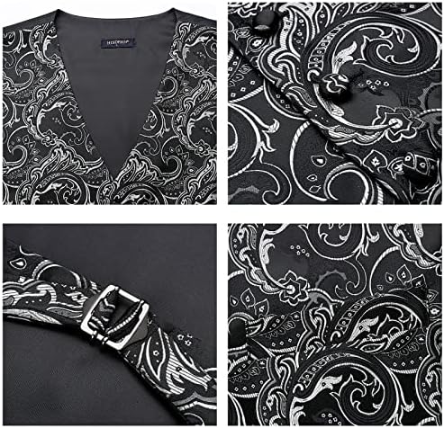 HISDERN Mens Vest Tie Set 3PC Formal Waistcoat Paisley Floral Jacquard Necktie Pocket Square Suit Vests Wedding Party