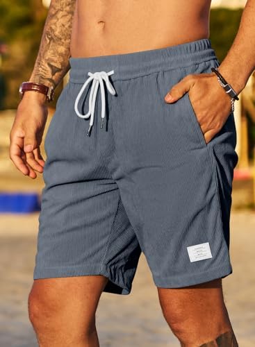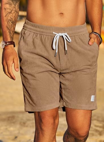 JMIERR Men's Corduroy Shorts Casual Elastic Waist Drawstring Lightweight Summer Beach Shorts