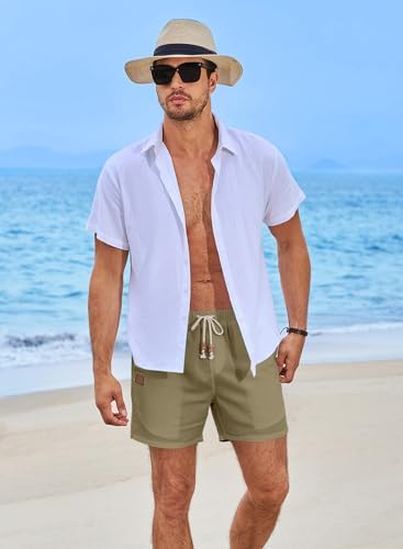 JMIERR Mens Casual 5"/ 7" Cotton Linen Shorts - Elastic Waist Drawstring Summer Beach Shorts with Pockets