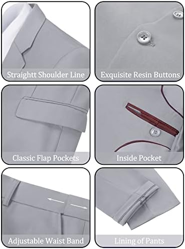 HUUTOE Men's 3 Piece Suit Slim Fit Business Wedding Groomsmen Prom Suits One Button Blazer Jacket Vest Pants Tuxedo Set