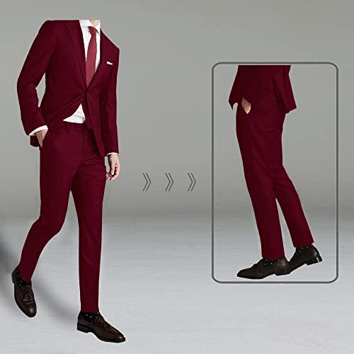 JPF Men's 2 Piece Slim Fit Suit Set, Two Button Solid Jacket Pants with Tie Suits for Men