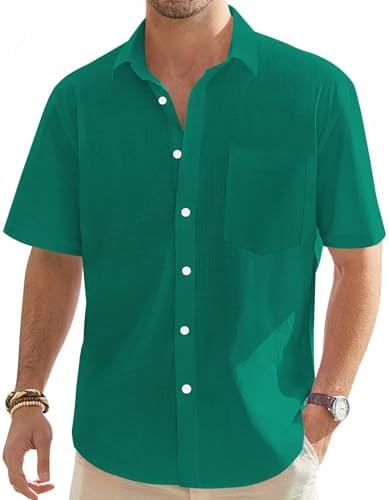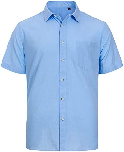 J.VER Men's Cotton Linen Short Sleeve Shirts Casual Lightweight Button Down Shirts Vacation Beach Summer Tops with Pocket