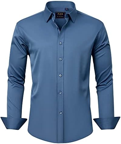 J.VER Men's Dress Shirts Solid Long Sleeve Stretch Wrinkle-Free Formal Shirt Business Casual Button Down Shirts