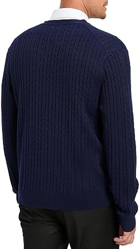 Kallspin Men's Cardigan Sweater Wool Blend Cable Knit V Neck Buttons Cardigan with Pockets