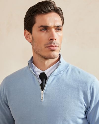 Kallspin Men's Quarter-Zip Sweater Pure Cotton Mock Neck Knit Long Sleeve Pullover Sweater