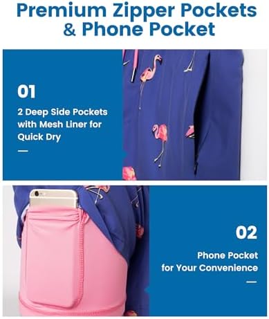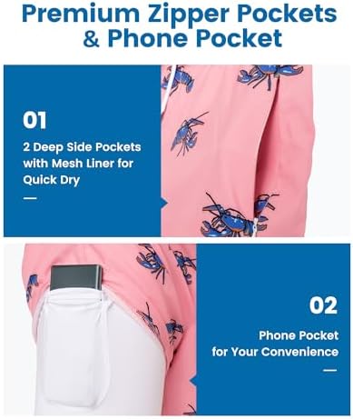 maamgic Mens Swim Trunks with Compression Liner 5" Stretch Beach Shorts Quick Dry with Zipper Pockets No-Chafing Board Shorts