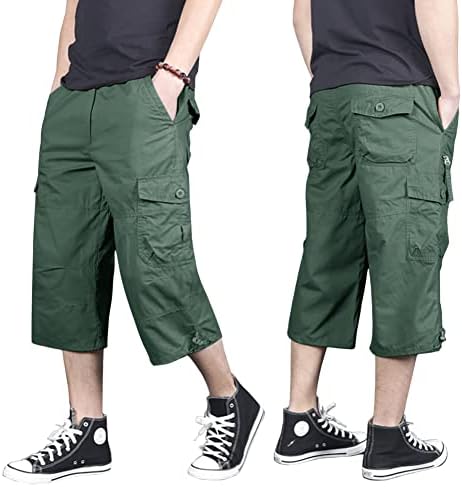 MAGNIVIT Men's Capri Long Elastic Cargo Shorts below Knee Shorts 3/4 Cotton Cargo Casual Shorts with Multi-Pockets