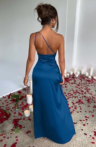 Memoriesea Women's Sexy One Shoulder Satin High Split Cocktail Wedding Party Maxi Dress
