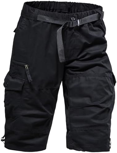 Men's Cargo Shorts 3/4 Relaxed Fit Mens Running Shorts 7 Pockets Elastic Waist Cotton Hiking Shorts