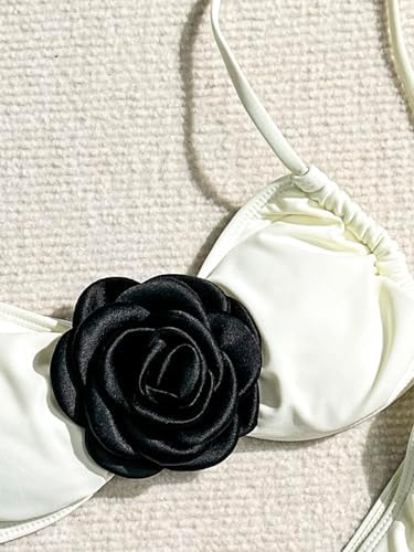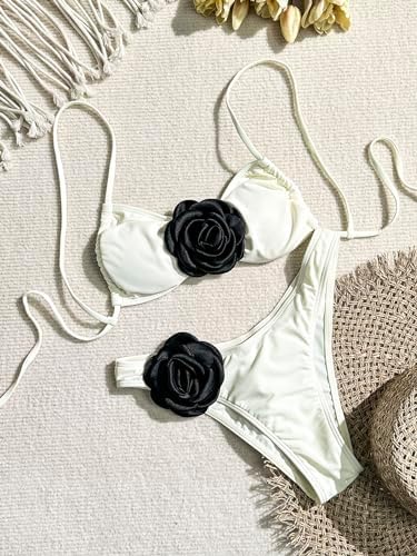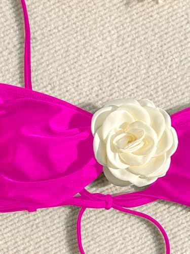 OYOANGLE Women's 2 Piece 3D Rose Bikini Swimsuit Spaghetti Strap High Waisted Bathing Suit Beachwear