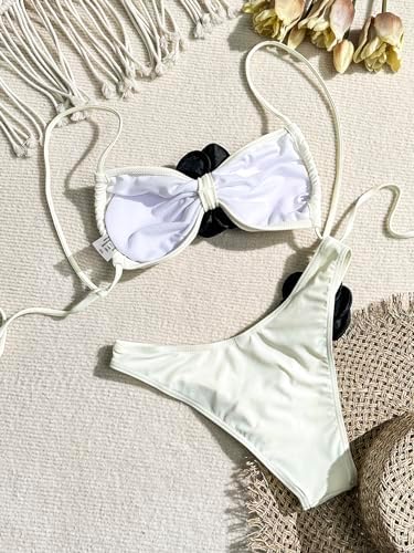VOLAFA Women's Triangle Bikini Set String Swimsuit Print Tie Smocked Ruched Two Piece Bathing Suit