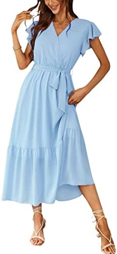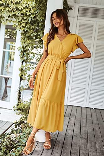 PRETTYGARDEN Women's 2024 Floral Boho Dress Wrap V Neck Short Sleeve Belted Ruffle Hem A-Line Flowy Maxi Dresses
