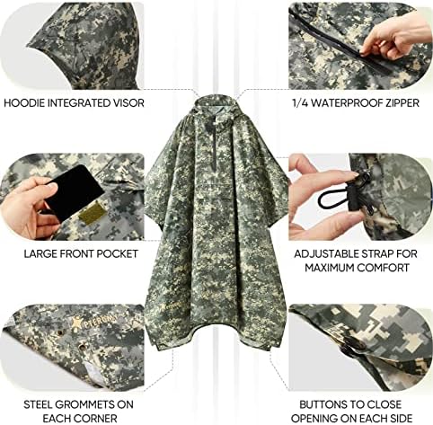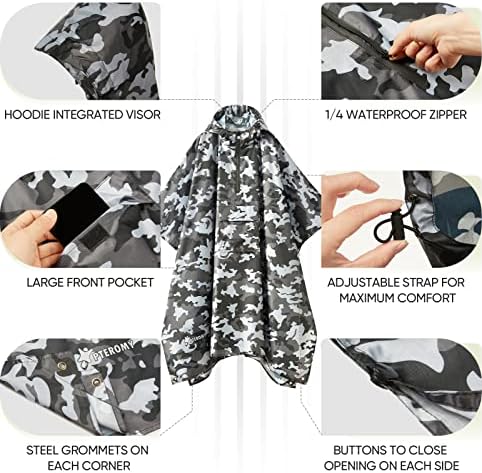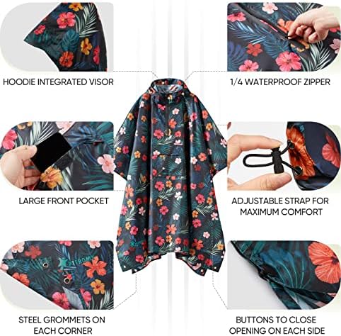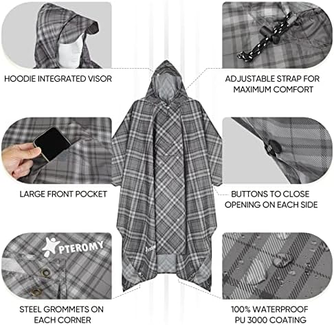 PTEROMY Hooded Rain Poncho for Adult with Pocket, Waterproof Lightweight Unisex Raincoat for Hiking Camping Emergency