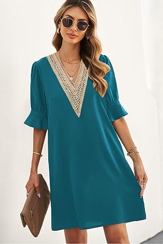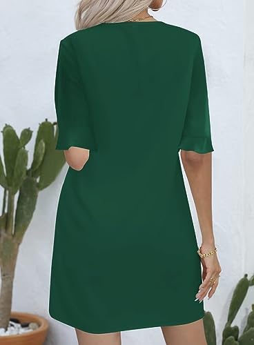 QACOHU Summer Dresses for Women V Neck Ruffle Short Sleeve Casual Shift Dress