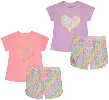 Sleep On It Girls Pajamas Short Sets 4 Piece Tank Top and Short Sleeve Summer Sleepwear for Kids (2 Full Sets)