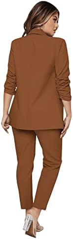 SweatyRocks Women's 2 Piece Solid Ruched Sleeve Blazer and Pants Business Office Suit Set
