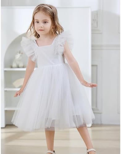 Tutu.kk Toddler Girls Vintage Party Dress Ruffled Sleeve A-Line Tulle Flower Girl Dresses for Wedding,Birthday