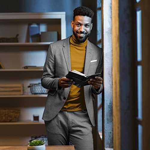 JPF Men's 2 Piece Slim Fit Suit Set, Two Button Solid Jacket Pants with Tie Suits for Men