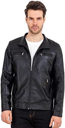 VICALLED Mens Leather Jacket Slim Fit Stand Collar PU Motorcycle Jacket Lightweight