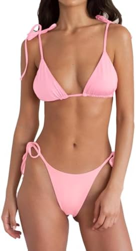 VOLAFA Women's Triangle Bikini Set String Swimsuit Print Tie Smocked Ruched Two Piece Bathing Suit