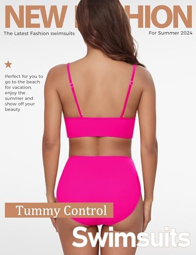 women's bikini swimsuits two piece tummy control 2024 bathing suit with high waisted bottom and adjustable bikini tops