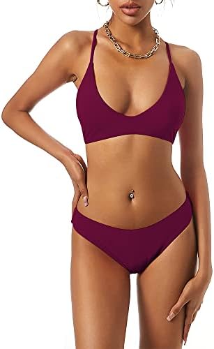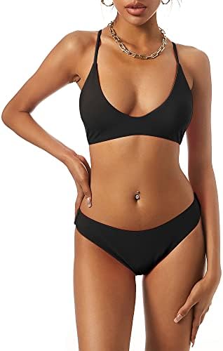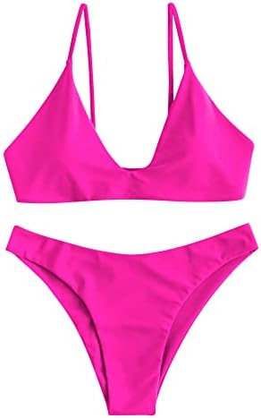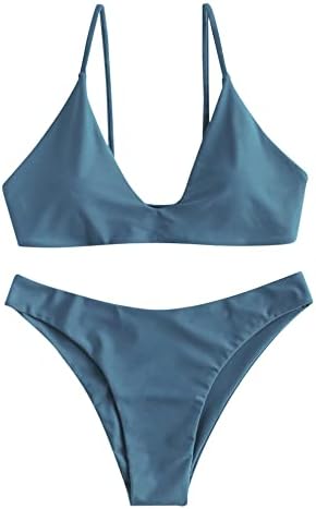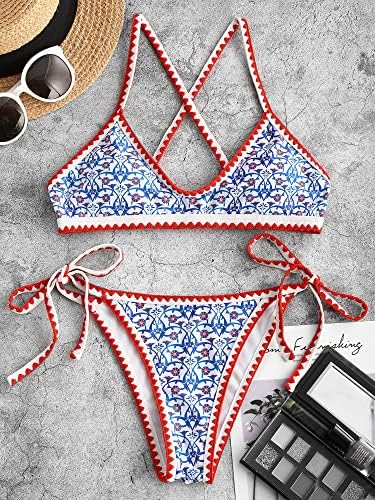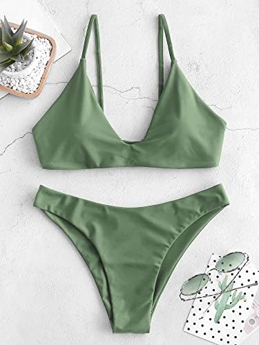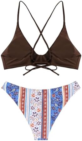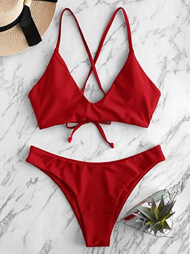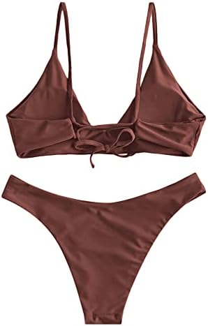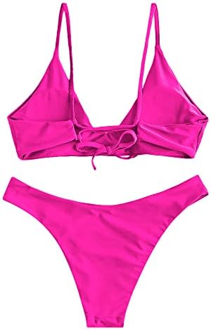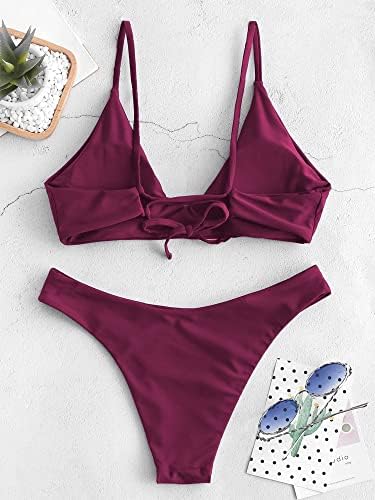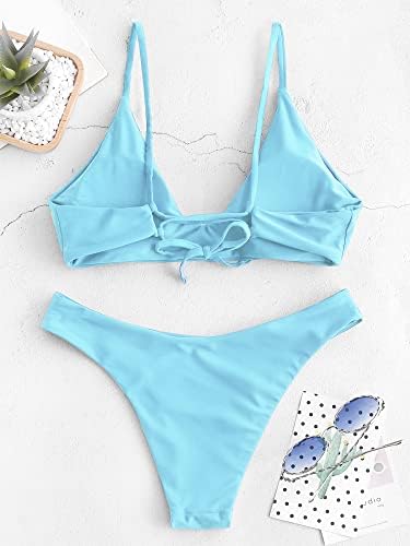 ZAFUL Women's Tie Back Padded High Cut Bralette Bikini Set Two Piece Swimsuit
