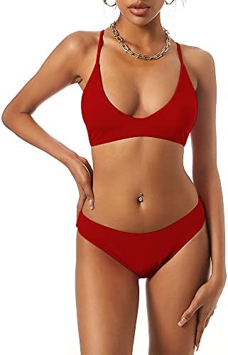 CUPSHE Women's Bikini Swimsuit Front Cross Lace Up Two Piece Bathing Suit