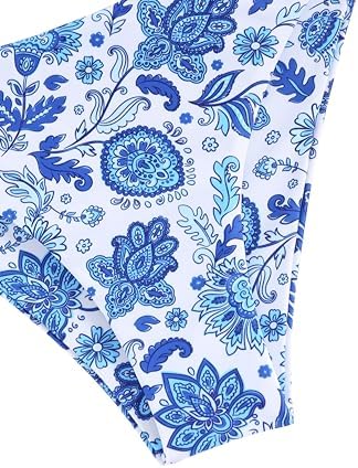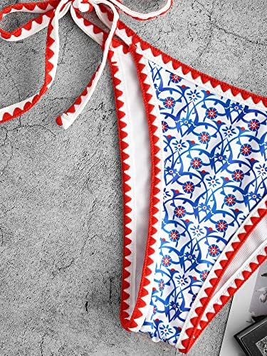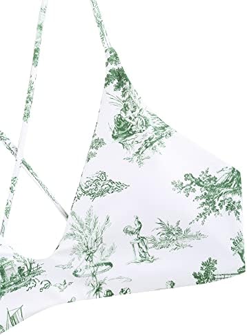 VOLAFA Women's Triangle Bikini Set String Swimsuit Print Tie Smocked Ruched Two Piece Bathing Suit
